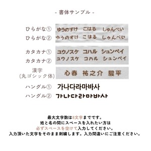 ご記入頂きましたそのままの文字で刺繍致します。入力間違いにご注意下さい。