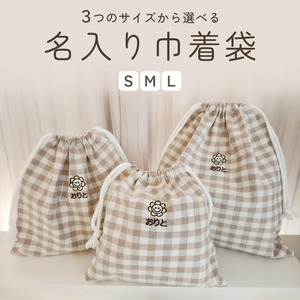 名前入り 巾着袋 3サイズ 入園 入学 おむつ入れ 着替え入れ ミルク入れ