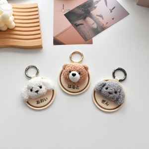 可愛らしいマスコットが付いた丸型のネームタグです。